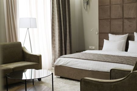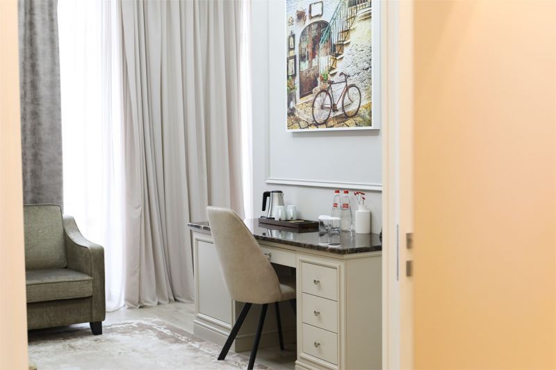 Номера в стиле неоклассики выделяются своей простотой и элегантностью, обеспечивая при этом максимальный комфорт для гостей. Все комнаты оснащены современной мебелью, ЖК-телевизорами и Wi-Fi. Ванная оборудована душевой кабиной, укомплектована полотенцами и тапочками. В ресторане отеля гости могут насладиться разнообразными блюдами и напитками как местной, так и европейской кухни. На территории отеля есть фитнес-зал и уютная зона отдыха на верхнем этаже, подходящая для встреч с коллегами или чтения книг. Конференц-зал на 30 человек оснащён всем необходимым для проведения деловых мероприятий. Расстояние до песчано-галечного пляжа составляет около 1,5 километров.